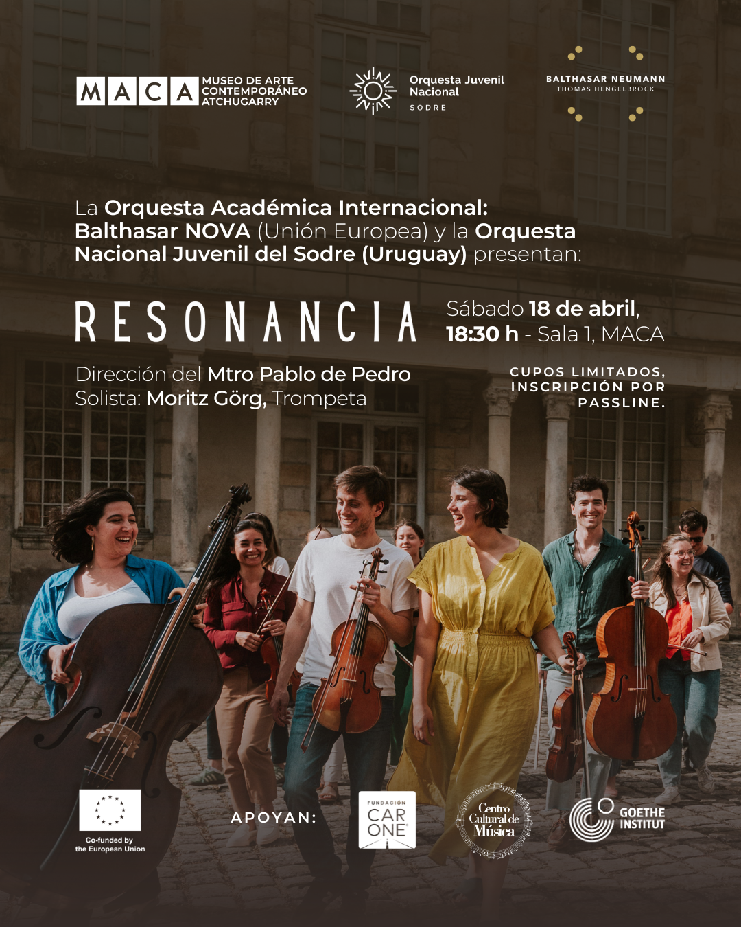 El MACA presenta Resonancia, un encuentro artístico que reúne al Programa Académico NOVA de la Orquesta Balthasar Neumann (Alemania) y a la Orquesta Nacional Juvenil del Sodre (Uruguay), en un proyecto de formación e intercambio centrado en la interpretación del repertorio de los siglos XVIII y XIX.