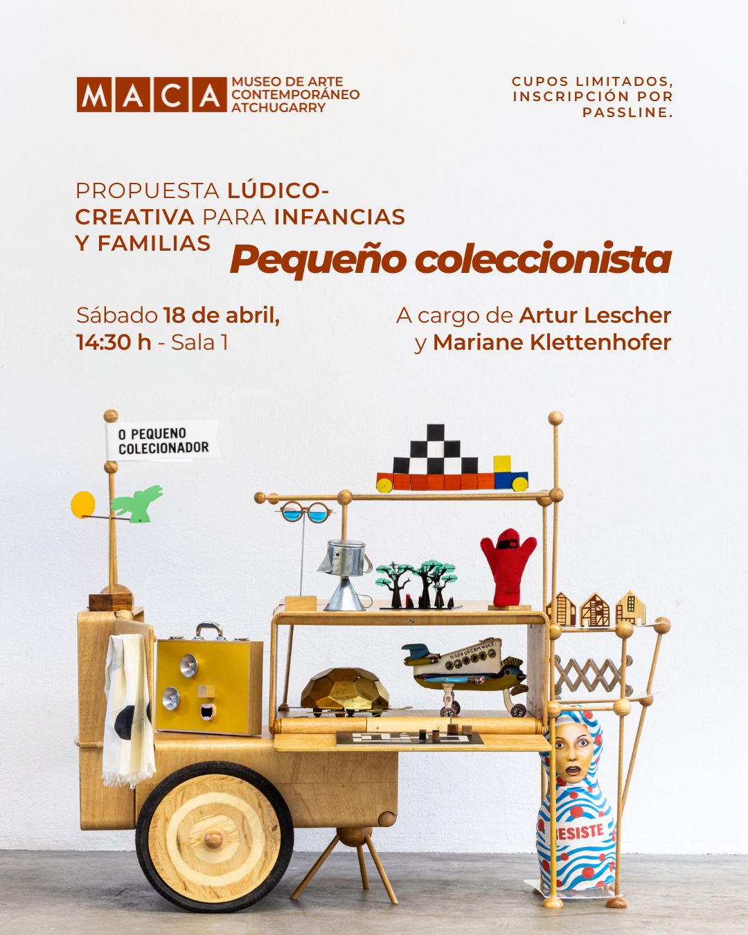 El MACA invita a participar de un encuentro lúdico-creativo desarrollado por O Pequeno Colecionador, un colectivo que trabaja en la intersección entre arte y juego, proponiendo experiencias que despiertan la curiosidad, la imaginación y nuevas formas de percibir el mundo.