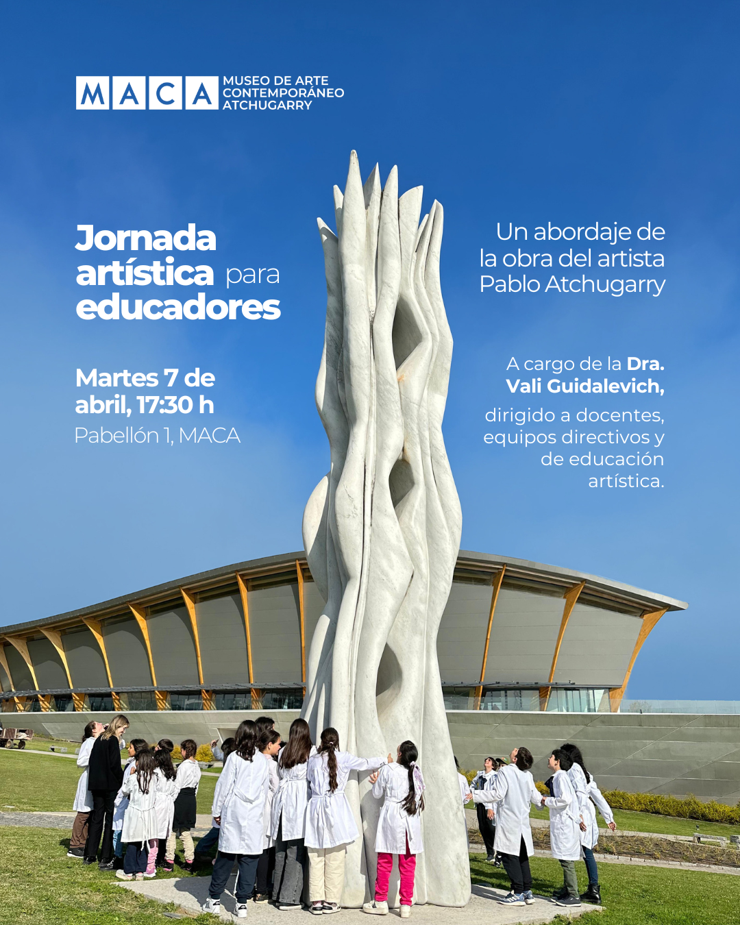 El MACA presenta la segunda edición de esta jornada de formación destinada a docentes, equipos directivos y profesionales de la educación artística, tanto del ámbito formal como no formal. La actividad propone un acercamiento pedagógico, sensible y situado a la obra del artista Pablo Atchugarry, integrando experiencias estéticas, recorridos y producción artística.