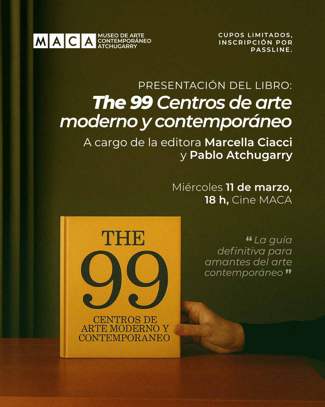 El MACA presenta la edición uruguaya del libro The 99 Centros de arte moderno y contemporáneo, un proyecto editorial que reúne una selección de 99 instituciones culturales de 42 países, trazando un mapa global del arte actual. El volumen destaca al MACA como uno de los centros incluidos en la publicación, siendo además el primer museo de América —junto a la Menil Collection— en recibir el libro.