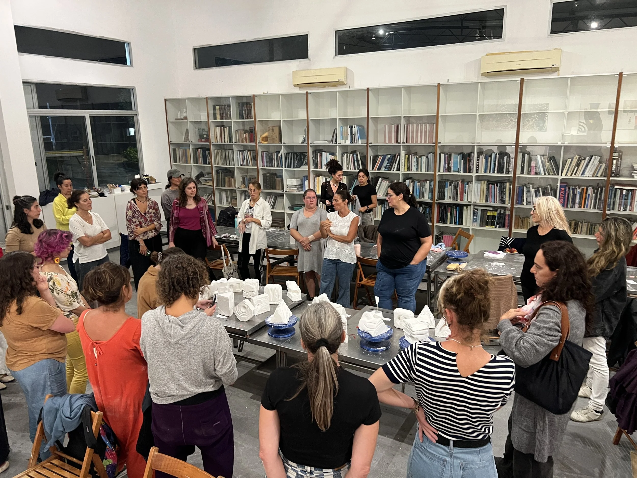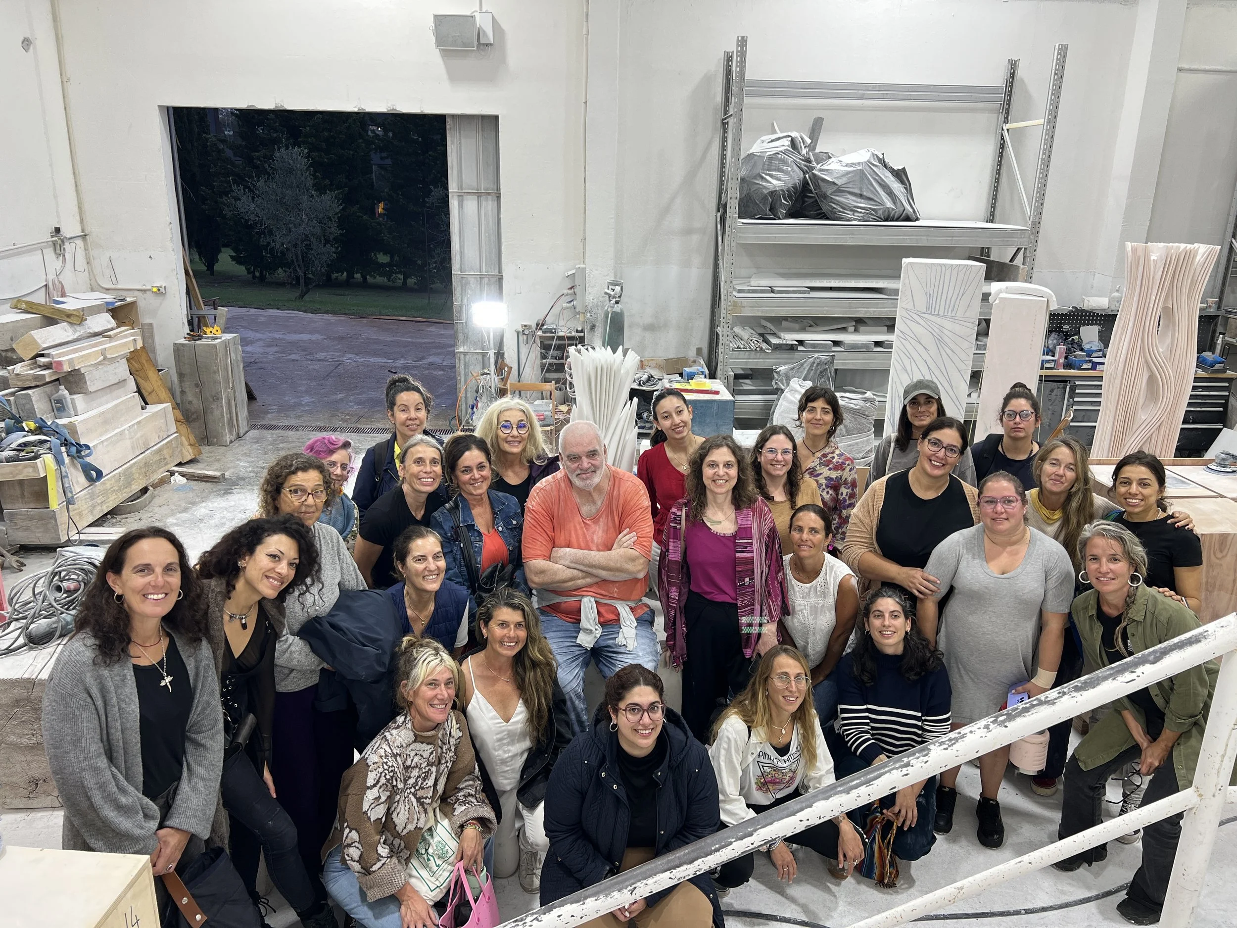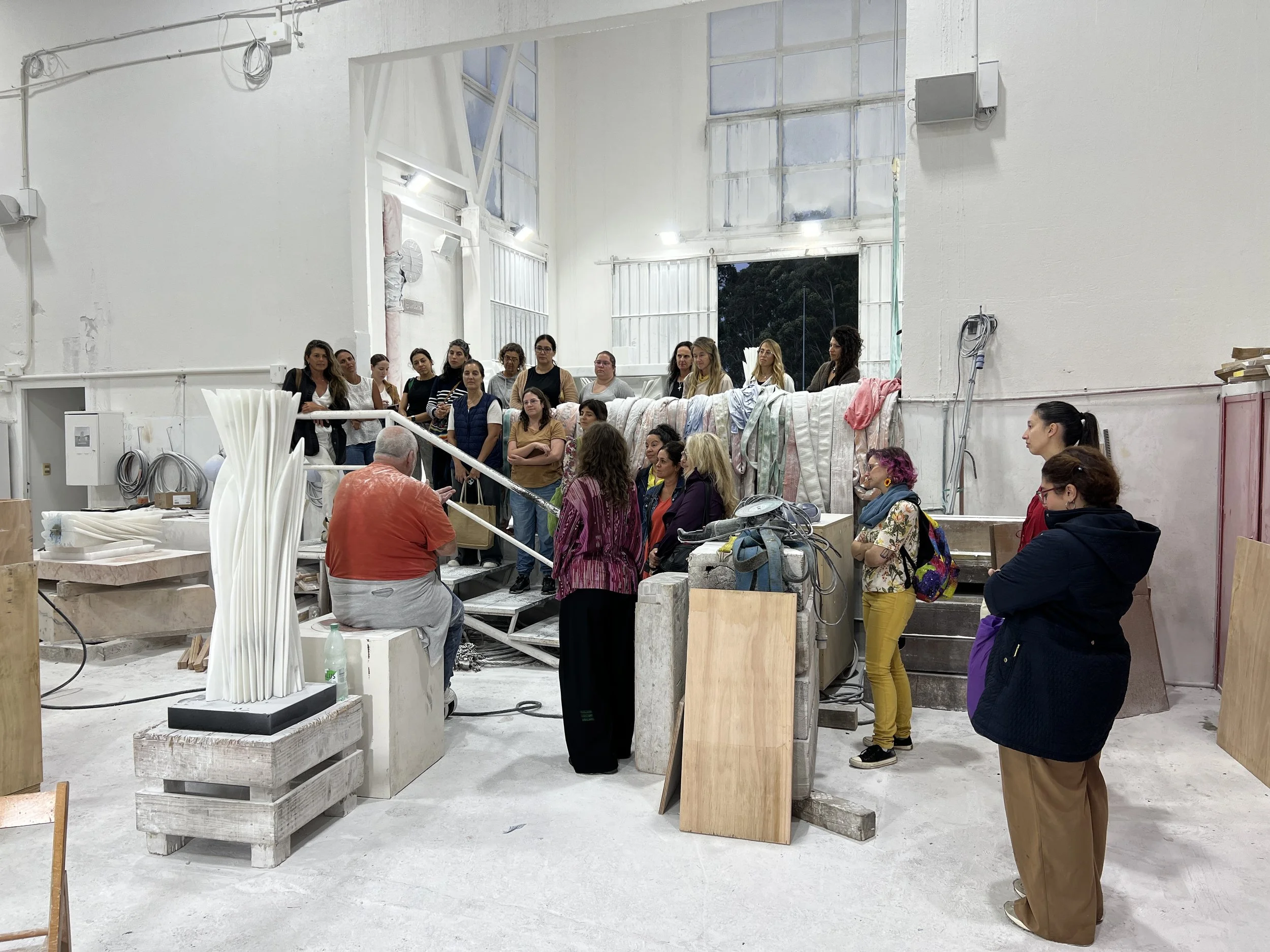 La jornada comenzó en el Pabellón 1 con una dinámica grupal de presentación, generando un espacio de encuentro entre las participantes. Luego, el grupo visitó el taller del artista, donde Atchugarry compartió aspectos de su proceso creativo y dialogó con las asistentes.