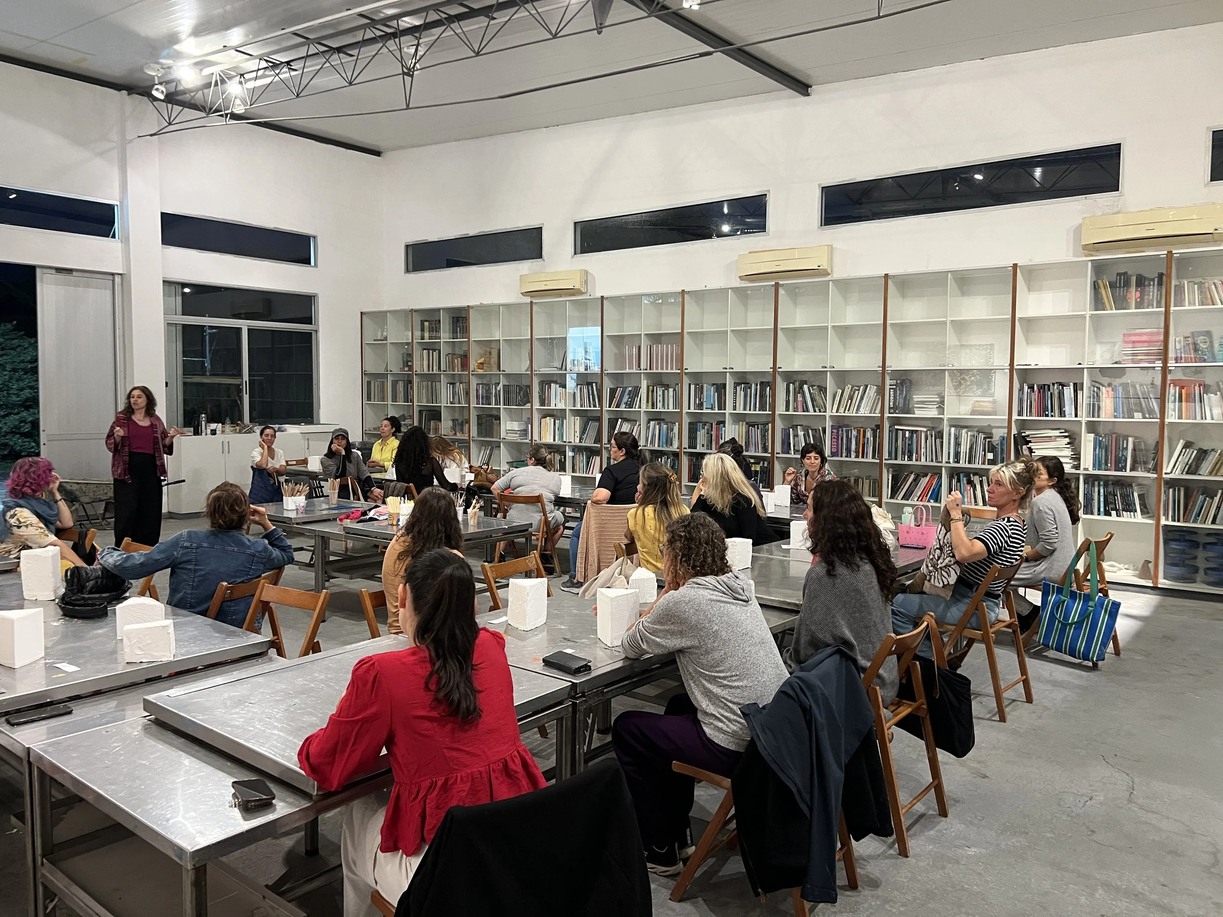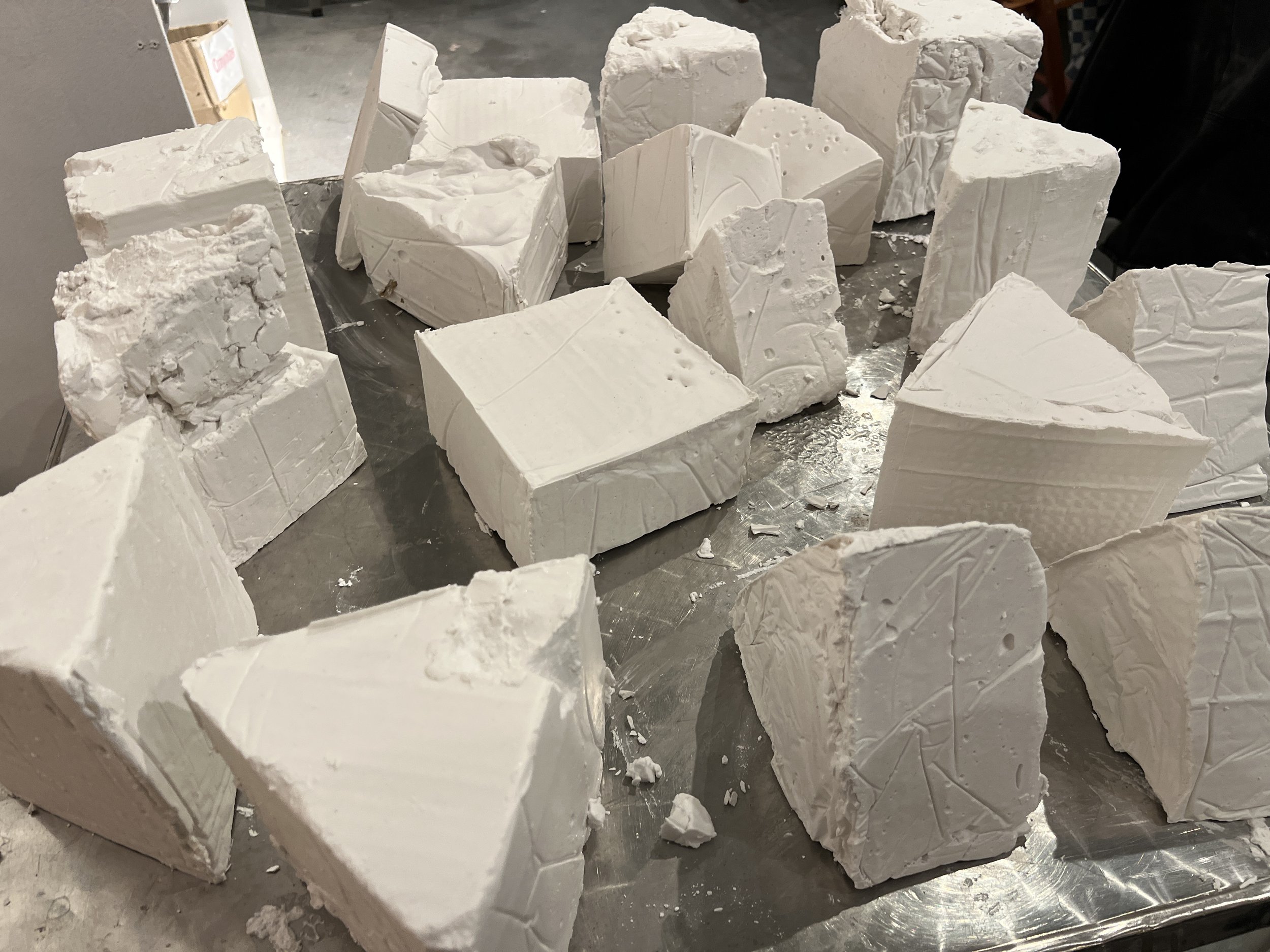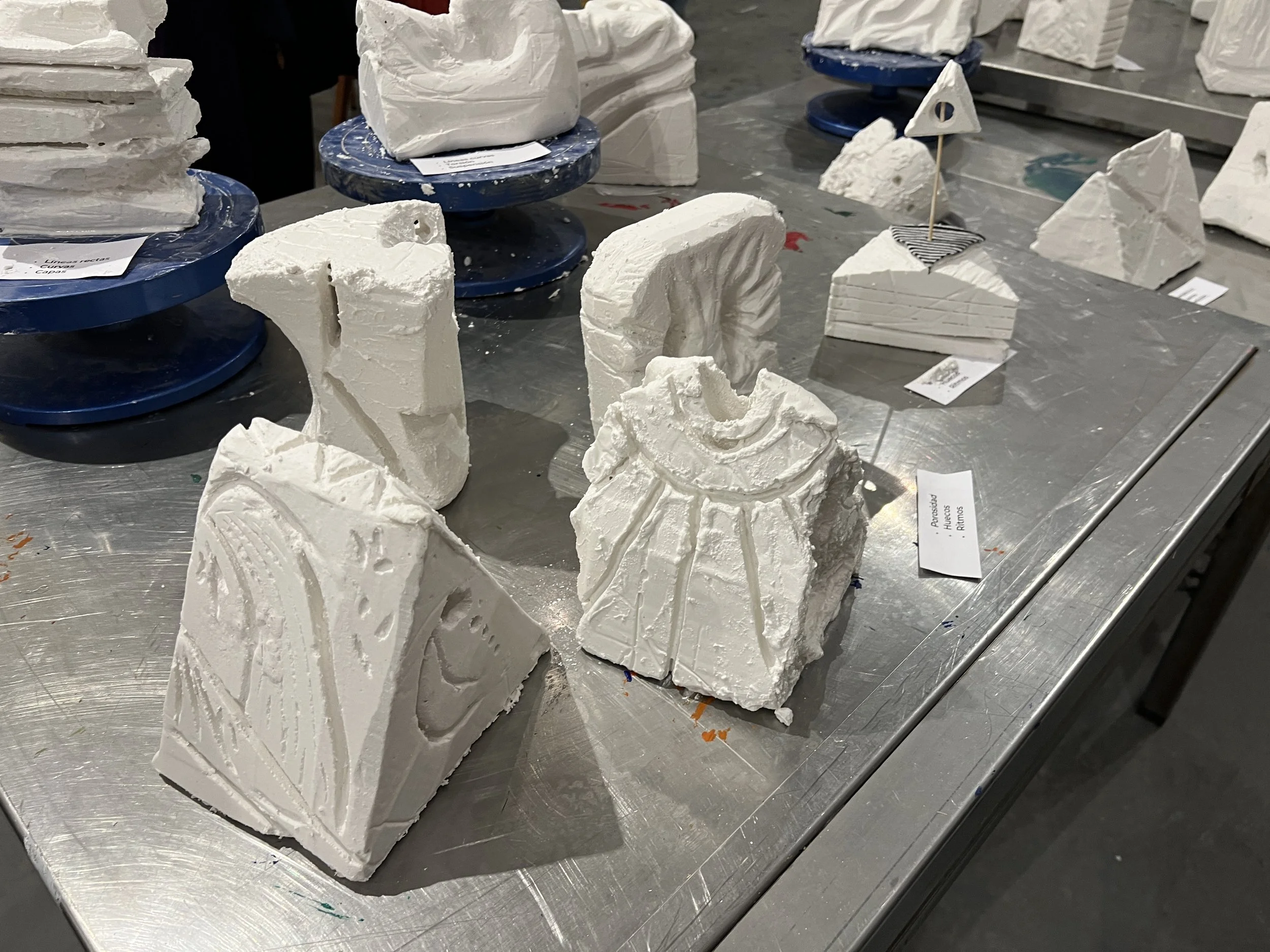 La jornada finalizó en la sala didáctica, donde cada participante trabajó con bloques de yeso, explorando sus posibilidades como material para la creación en el aula.