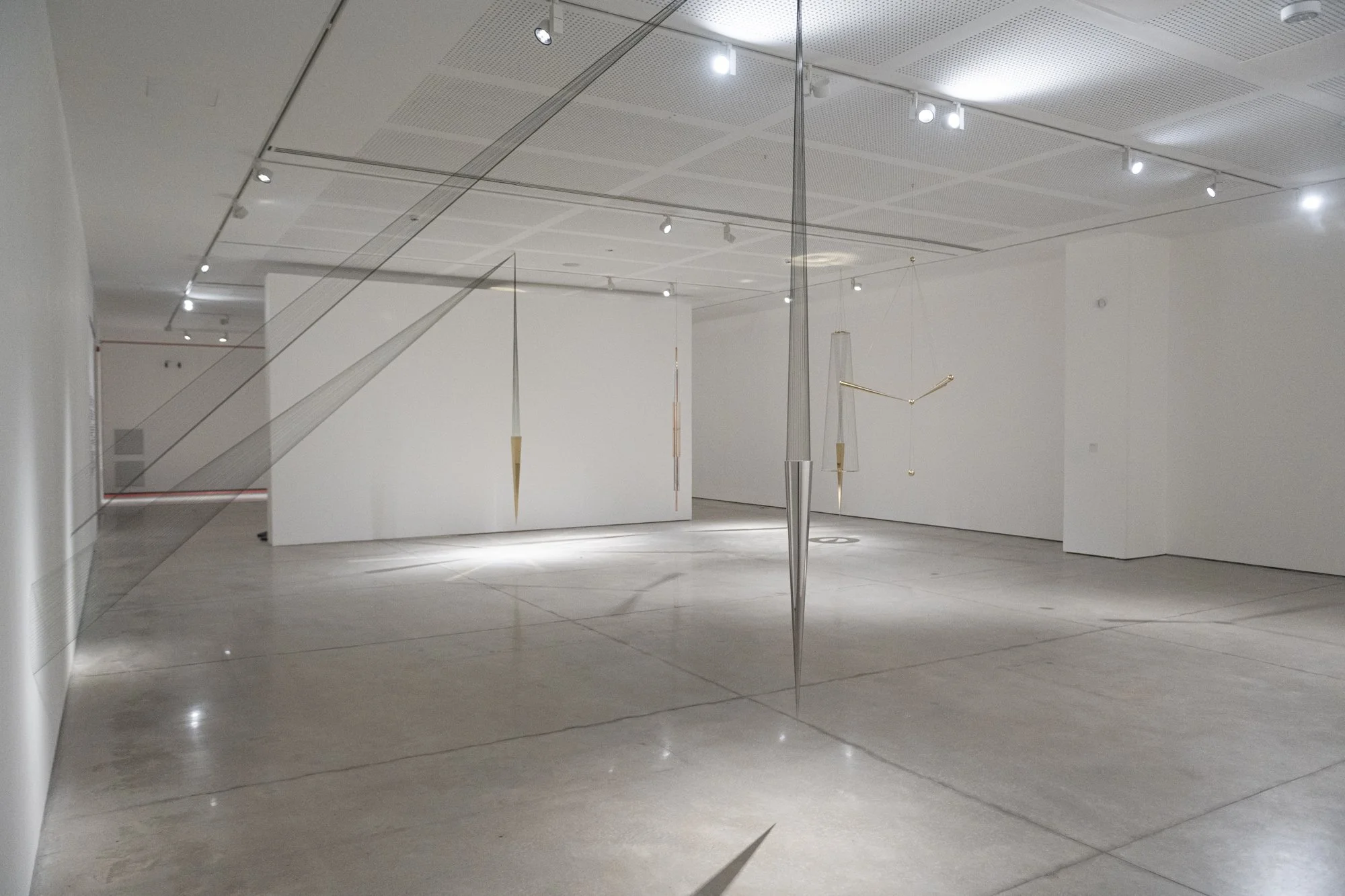 Artur Lescher (São Paulo, 1962) desarrolla desde hace más de tres décadas una investigación sostenida sobre la materia, el espacio y la percepción. Sus obras —precisas, tensas y suspendidas— combinan peso, vacío, línea y vibración en configuraciones que se activan en relación con el espacio y con el recorrido del espectador. Su práctica concibe la escultura como un sistema de relaciones más que como un objeto aislado.