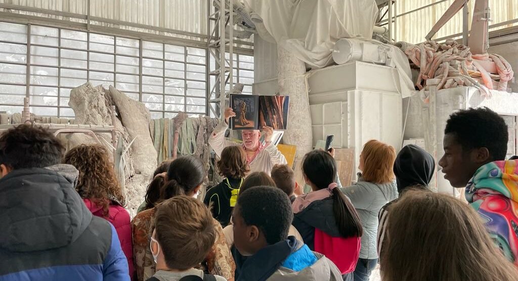 A spiegare ai telespettatori la provenienza del monumento ci ha pensato il critico d’arte Luca Nannipieri, spiegando che l’opera s’intitola ‘Civiltà e cultura del lavoro lecchese’, ed è composta da 33 tonnellate di marmo bianco.